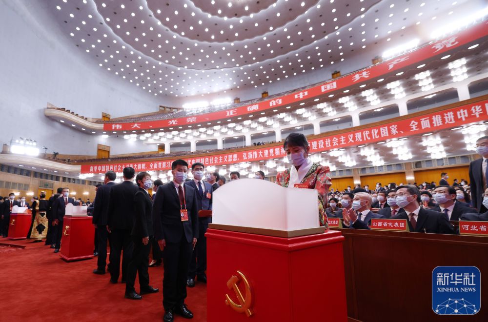 10月22日,中國(guó)共產(chǎn)黨第二十次全國(guó)代表大會(huì)閉幕會(huì)在北京人民大會(huì)堂舉行。這是代表投票選舉。新華社記者 劉衛(wèi)兵 攝