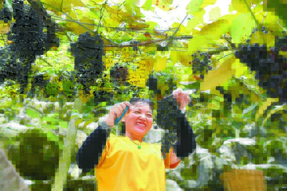 “今年毛葡萄剛剛銷售完畢,總產(chǎn)量超13萬公斤,產(chǎn)值約80萬元?!被刎撠熑恕ⅰ?0后”返鄉(xiāng)創(chuàng)業(yè)大學生藍鈞說,毛葡萄生命力旺盛,向下扎根、向上攀爬,一株甚至可覆蓋1畝石山,可有效防止水土流失。