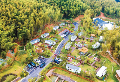 安徽省蕪湖市繁昌區(qū)孫村鎮(zhèn)中分村,游客在繁昌慢谷旅游度假區(qū)里的途居馬仁山房車露營地游玩。肖本祥攝(人民圖片)