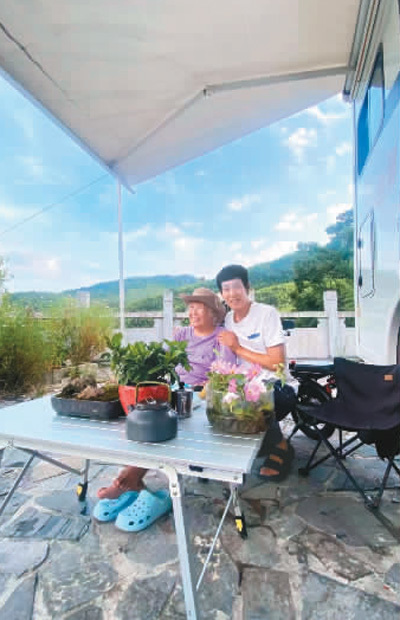 許濤和母親在房車前。資料圖片