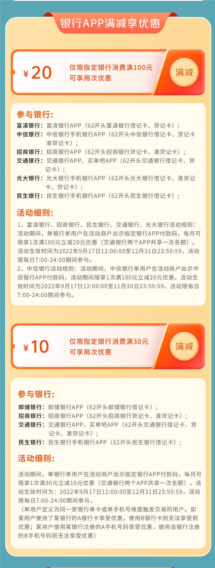核券時請注意:出示付款碼付款時請注意票券所屬銀行,需要選擇與票券歸屬銀行一致的相關銀行卡進行支付,否則將出現(xiàn)無法享受優(yōu)惠的情況。