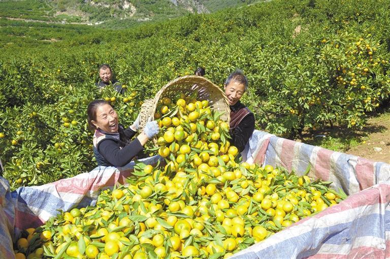 10月11日,城固縣桔園鎮(zhèn)郭家山村的柑橘喜獲豐收。 通訊員 李云湉攝