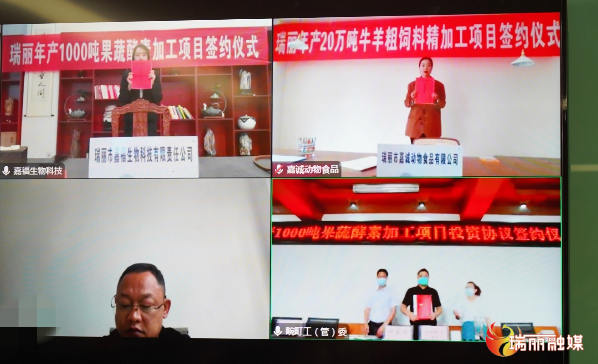 今年以來,瑞麗市全力克服多重壓力挑戰(zhàn),統(tǒng)籌疫情防控和社會經濟發(fā)展,見縫插針開展招商引資工作。10月26日,瑞麗市舉行重點項目投資協(xié)議線上簽約儀式。市政府與嘉誠動物食品有限公司、嘉福生物科技有限責任公司項目代表以視頻連線的方式“云上”簽訂了投資協(xié)議,總投資3.5億元。