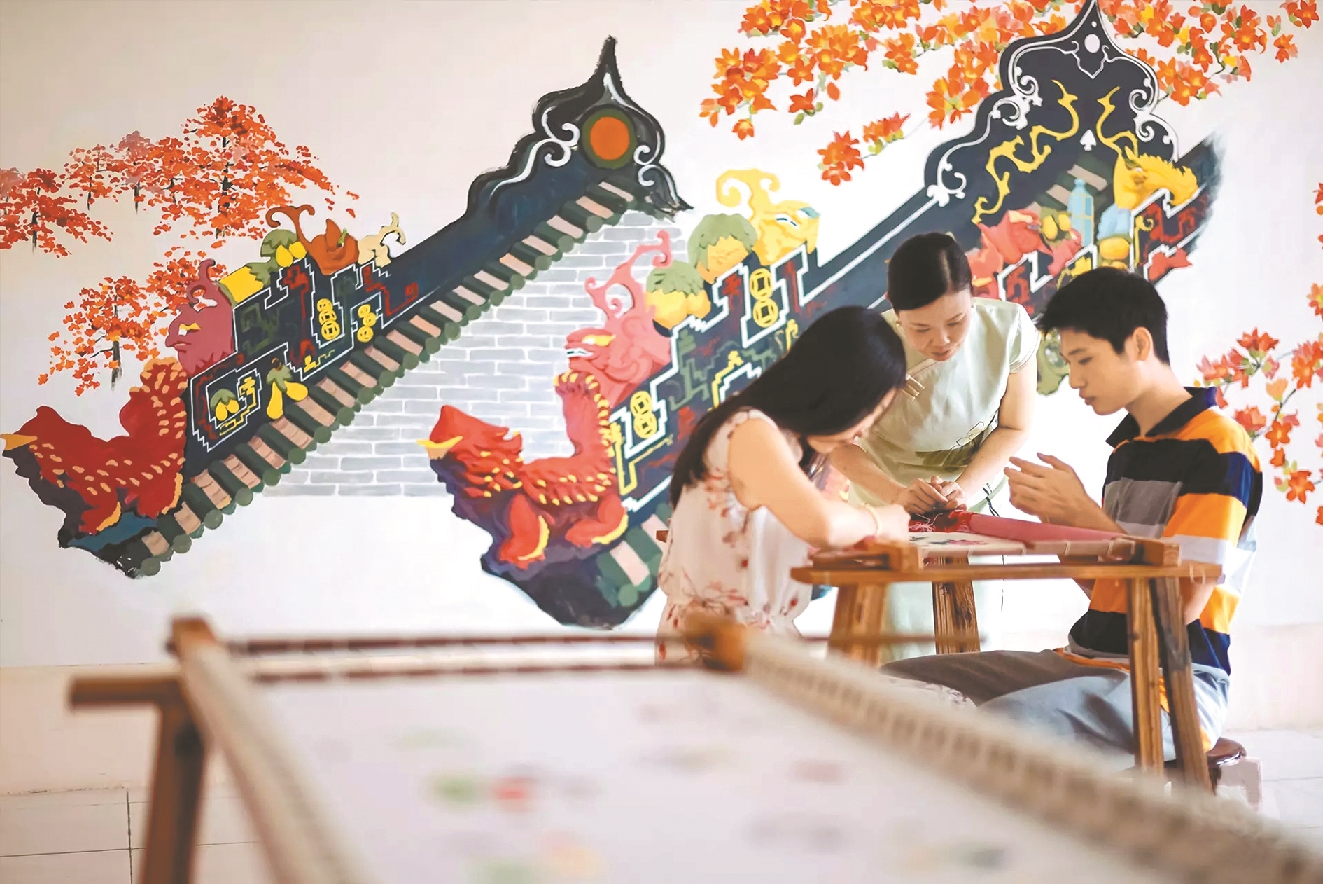 近年,梁曉曼欣喜地發(fā)現(xiàn),廣繡在數(shù)代人的努力下正逐漸為大眾所重新認識:“隨著廣繡非遺走進校園,廣繡產(chǎn)品融入現(xiàn)代生活,市民們現(xiàn)在看到廣繡作品會紛紛認出,這是他們在電視上看過的作品,這是他們子女在學校正在學習的非遺技藝?!?/p>