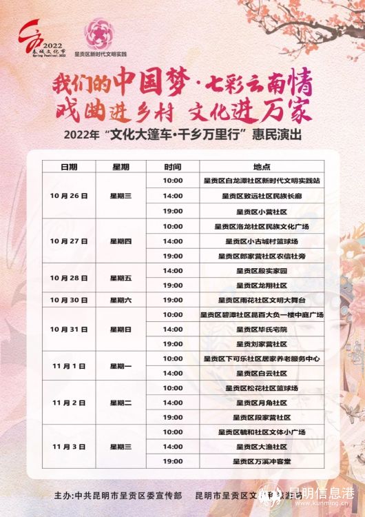 昆明信息港訊 記者段佳琪 10月27日,昆明市呈貢區(qū)新時代文明實(shí)踐暨2022年“文化大篷車·千鄉(xiāng)萬里行”惠民演出及戲曲進(jìn)鄉(xiāng)村活動,在洛龍社區(qū)民族文化廣場如火如荼開展。據(jù)悉,活動從10月26日開始,持續(xù)至11月3日,將在轄區(qū)8個街道20個社區(qū)開展文化惠民演出20場。