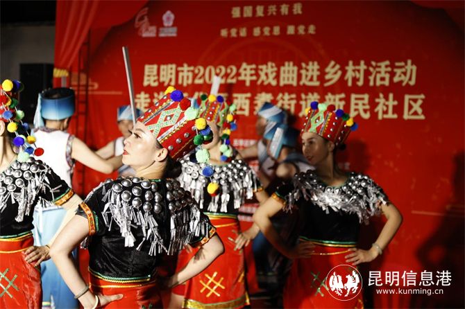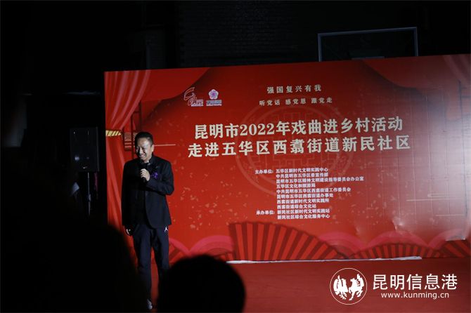 為豐富西翥村民的精神文化生活,讓村民感受到戲曲文化帶來的新氣象、新風貌,讓鄉(xiāng)親們的日子越過越紅火,有力推動鄉(xiāng)村文化振興。10月26日晚,以“強國復興有我——聽黨話、感黨恩、跟黨走”為主題的昆明市2022年戲曲進鄉(xiāng)村活動走進五華區(qū)西翥街道新民社區(qū)。
