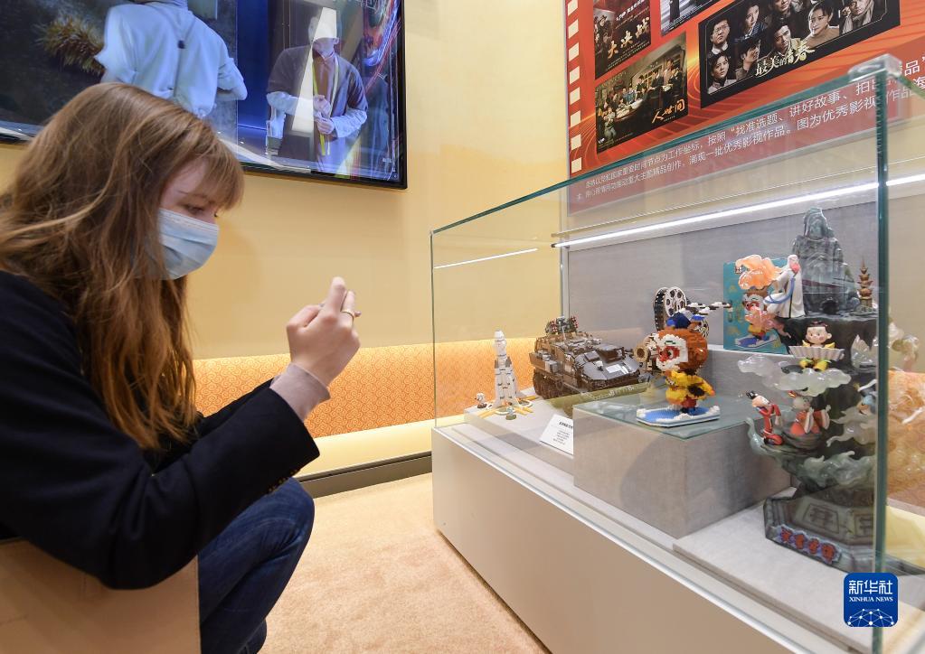 10月27日,外國嘉賓在參觀“奮進(jìn)新時代”主題成就展時拍攝展柜內(nèi)的卡通玩具。新華社記者 李賀 攝