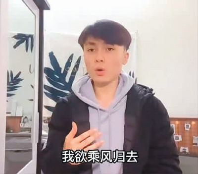 王禹正在錄制北京語言大學(xué)“德行言語六十載”中華經(jīng)典誦讀大賽的參賽視頻。