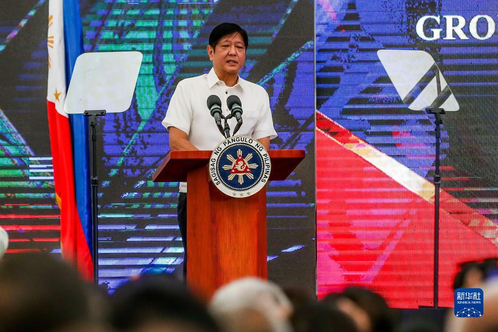 10月27日,在菲律賓達沃,菲律賓總統(tǒng)馬科斯在達沃-薩馬爾島大橋的開工儀式上發(fā)表講話。新華社發(fā)(烏馬利攝)