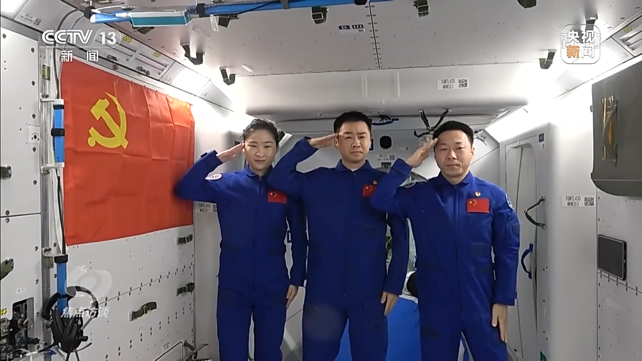 二十大開幕當(dāng)天,在距離地面400公里的中國空間站上,神舟十四號航天員乘組也實(shí)時(shí)收看了大會直播。