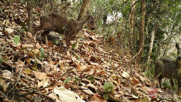 在視頻畫面里,和煦的陽光透過樹梢照在林間空地上,兩只緬甸斑羚在叢林坡地上自由散步,它們時而回頭東張西望,警覺地注視著周圍環(huán)境的動靜,時而邁著輕盈的步伐,小心翼翼地在林下空地上漫步,時而邊走邊覓食……紅外相機真實記錄了原始生態(tài)環(huán)境下動物與自然和諧共處的珍貴畫面。