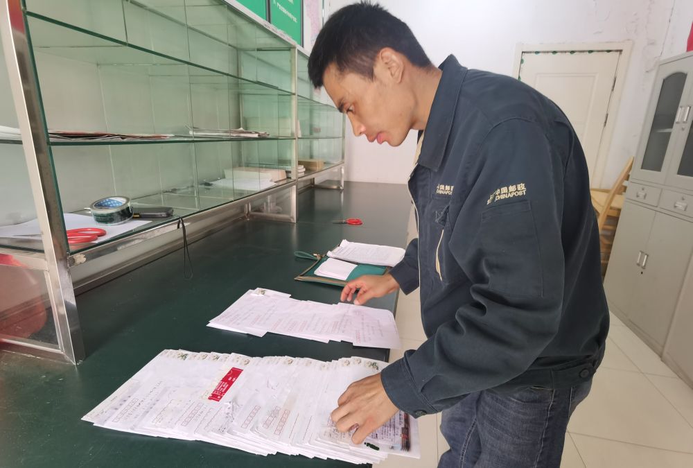 王德建在整理由于地址不詳被退回的信件。(受訪者供圖)