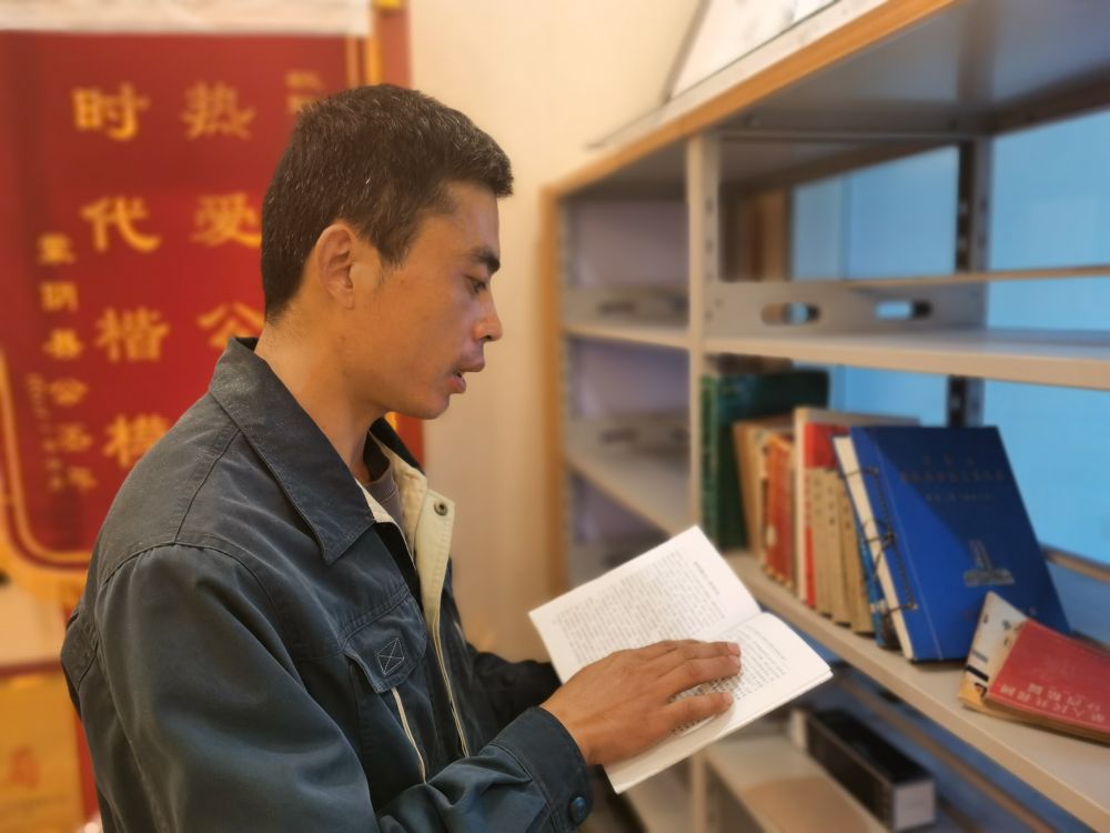 王德建在查閱相關(guān)資料。(受訪者供圖)