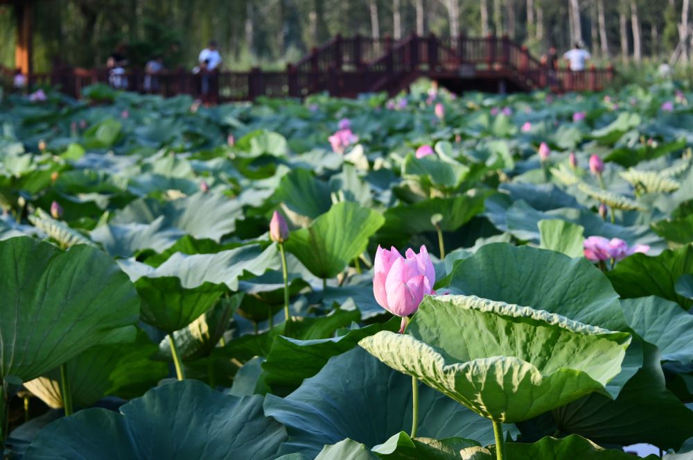 微山湖湖區(qū)內(nèi)荷花盛開(kāi)(2022年7月21日攝)。新華社記者 徐速繪 攝