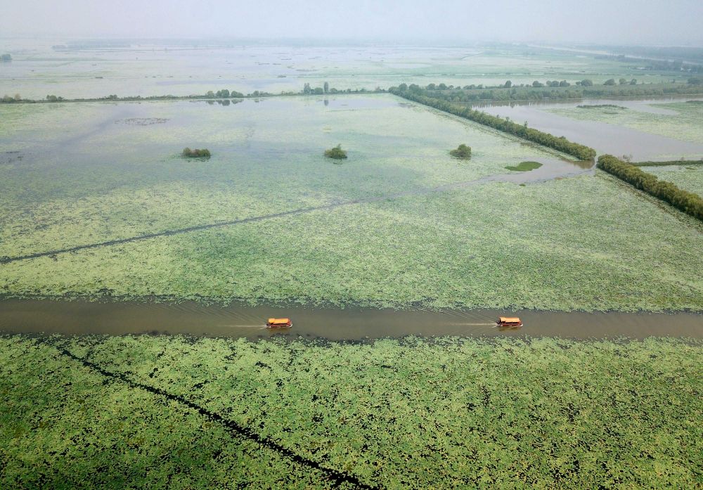 游客在微山湖游覽(2022年8月24日攝)。新華社記者 徐速繪 攝
