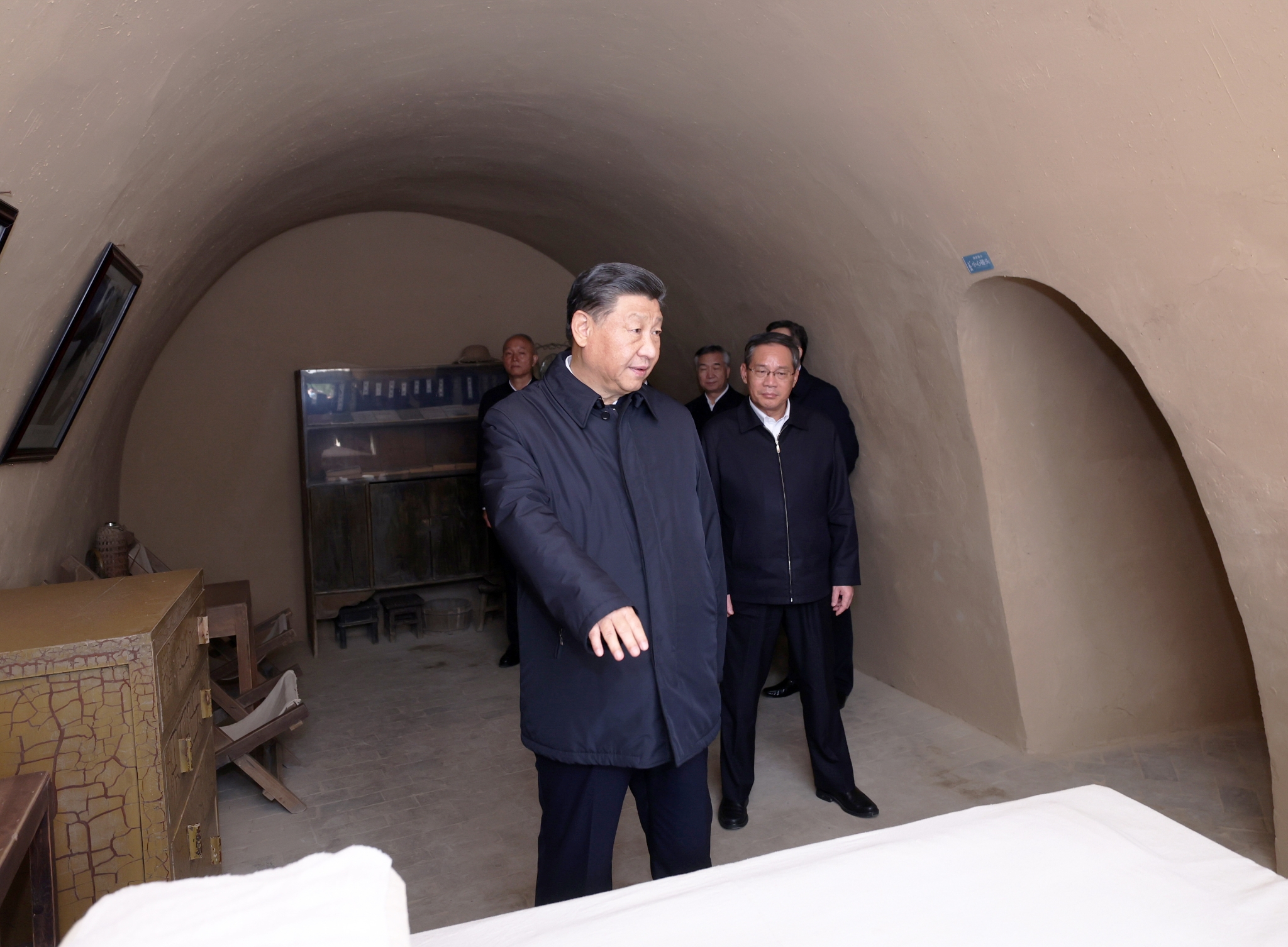 △ 10月27日,中共中央總書記、國家主席、中央軍委主席習近平帶領中共中央政治局常委李強、趙樂際、王滬寧、蔡奇、丁薛祥、李希,瞻仰延安革命紀念地。這是習近平等在楊家?guī)X參觀毛澤東舊居。