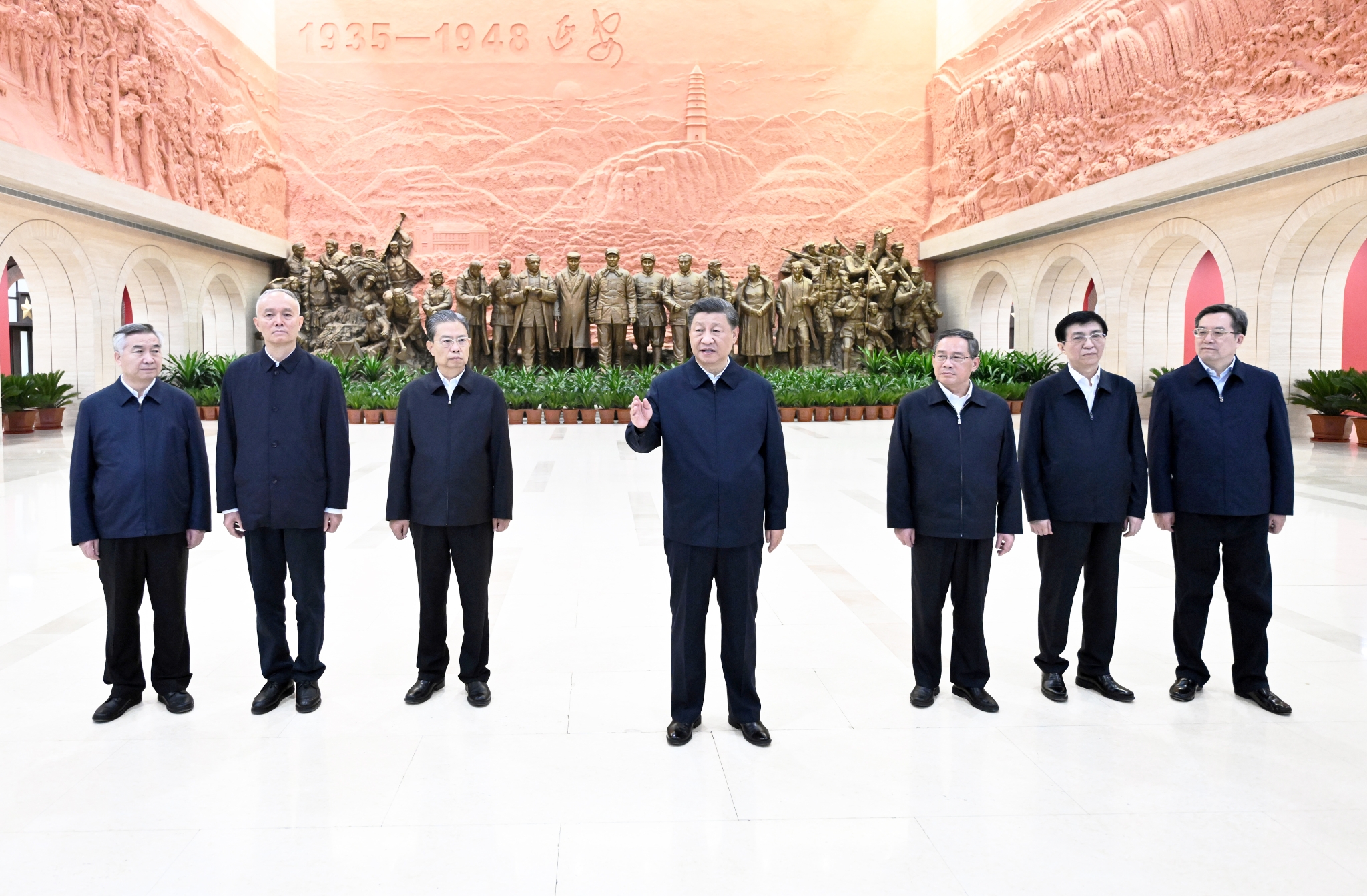 △ 10月27日,中共中央總書記、國家主席、中央軍委主席習近平帶領中共中央政治局常委李強、趙樂際、王滬寧、蔡奇、丁薛祥、李希,瞻仰延安革命紀念地。這是習近平等在延安革命紀念館,參觀《偉大歷程——中共中央在延安十三年歷史陳列》。