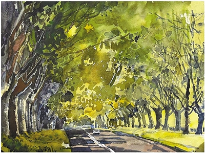 北京市林蔭大道速寫。 李曉林繪