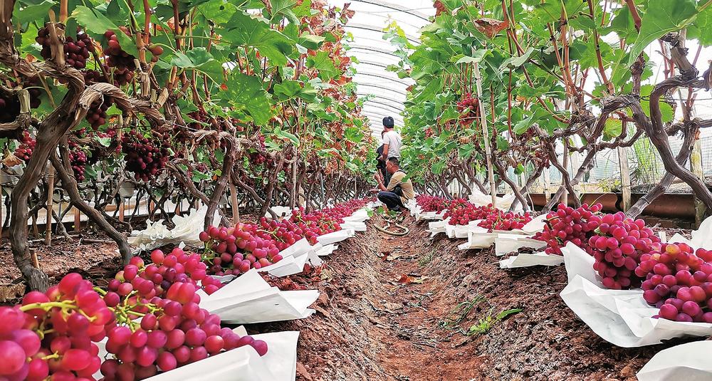 通??h興蒙鄉(xiāng) 葡萄種植大棚里,一串串圓潤(rùn)飽滿的葡萄綴滿枝頭,果味四溢。果農(nóng)和葡萄收購(gòu)商正忙碌著,剪摘、裝箱,有條不紊地進(jìn)行著每一道工序。興蒙鄉(xiāng)今年種植葡萄206畝,預(yù)計(jì)實(shí)現(xiàn)產(chǎn)量60萬(wàn)公斤,實(shí)現(xiàn)產(chǎn)值500萬(wàn)元。