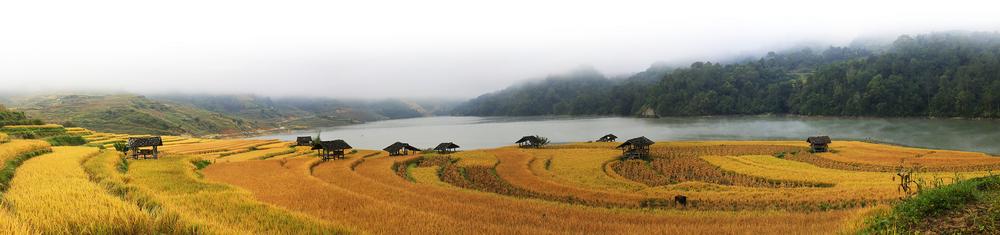 龍陵縣龍江鄉(xiāng) 龍江10萬(wàn)余畝稻谷成熟了。時(shí)下到龍江,站在高處放眼望去,映入眼簾的是滿目誘人的金黃。層層梯田中的稻谷翻著金浪,微風(fēng)吹過(guò),滿鼻都是稻花的香味。一座座嵌插在稻田中的深色小田房,宛如稻田中的“衛(wèi)士”,與稻田構(gòu)成一幅秋景圖。