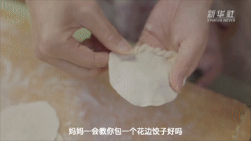 女兒幫忙包餃子