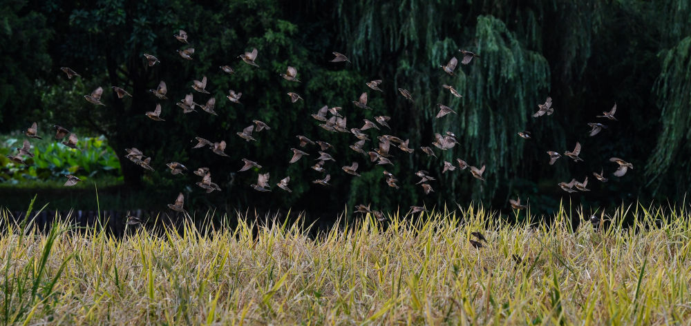 廣州海珠濕地稻田里的斑文鳥(2020年7月25日攝)。