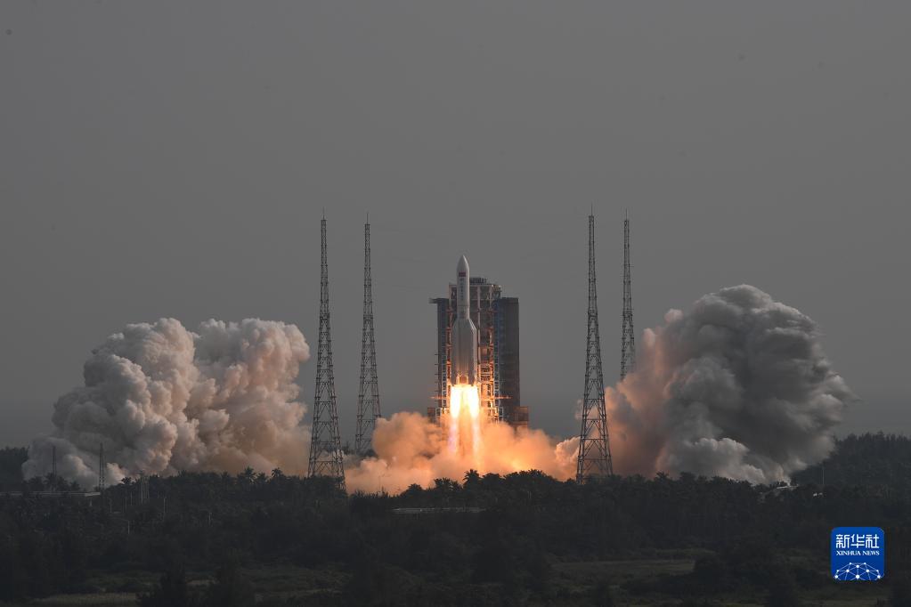 10月31日,搭載空間站夢天實(shí)驗(yàn)艙的長征五號B遙四運(yùn)載火箭,在我國文昌航天發(fā)射場點(diǎn)火發(fā)射。新華社記者 胡智軒 攝