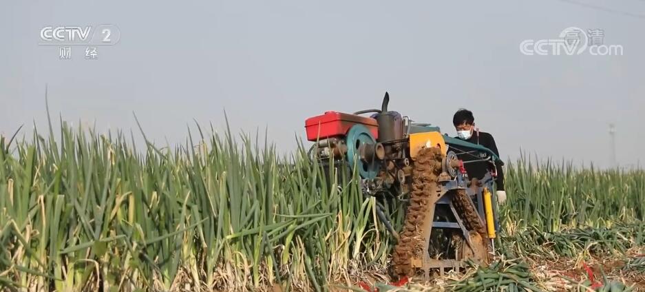 在不遠(yuǎn)處的一片蔥田里,種植戶正在用大蔥收獲機(jī)刨蔥、捆扎、裝車相互配合,田間地頭一片忙碌景象。