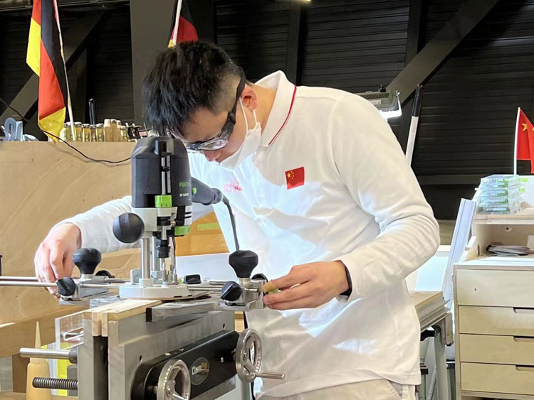透過這次比賽的一組組數(shù)據(jù)可見一斑:組委會給定一張立式柜圖紙,要求所有選手在4天內(nèi)、集中的22小時里,獨立完成交出成品;以1米高的桌腿為例,尺寸差要求在正負0.5毫米之內(nèi),做不到就得零分;來自18個國家和地區(qū)的18名選手同臺競技,評委會列出多達146項的指標進行打分評比,得分高者勝出。