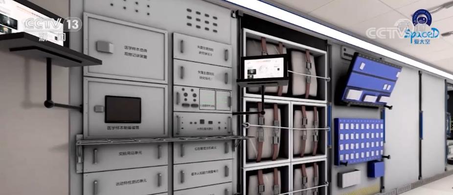 由于夢(mèng)天實(shí)驗(yàn)艙的定位是航天員工作的地方,因此,和問天實(shí)驗(yàn)艙最大的不同,就是這里沒有睡眠區(qū)和衛(wèi)生區(qū)。艙內(nèi)左右兩邊各有一排柜子,這些就是夢(mèng)天實(shí)驗(yàn)艙的科學(xué)實(shí)驗(yàn)機(jī)柜,包括超冷原子物理實(shí)驗(yàn)柜、高精度時(shí)頻實(shí)驗(yàn)柜、高溫材料科學(xué)實(shí)驗(yàn)柜、流體物理實(shí)驗(yàn)柜、兩相系統(tǒng)實(shí)驗(yàn)柜、燃燒科學(xué)實(shí)驗(yàn)柜、在線維修裝調(diào)操作柜等。未來,航天員或者載荷專家會(huì)在這里開展一系列的科學(xué)實(shí)驗(yàn)。
