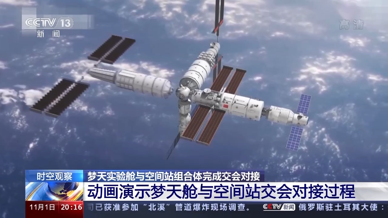 動(dòng)畫演示夢天艙與空間站組合體交會(huì)對(duì)接過程