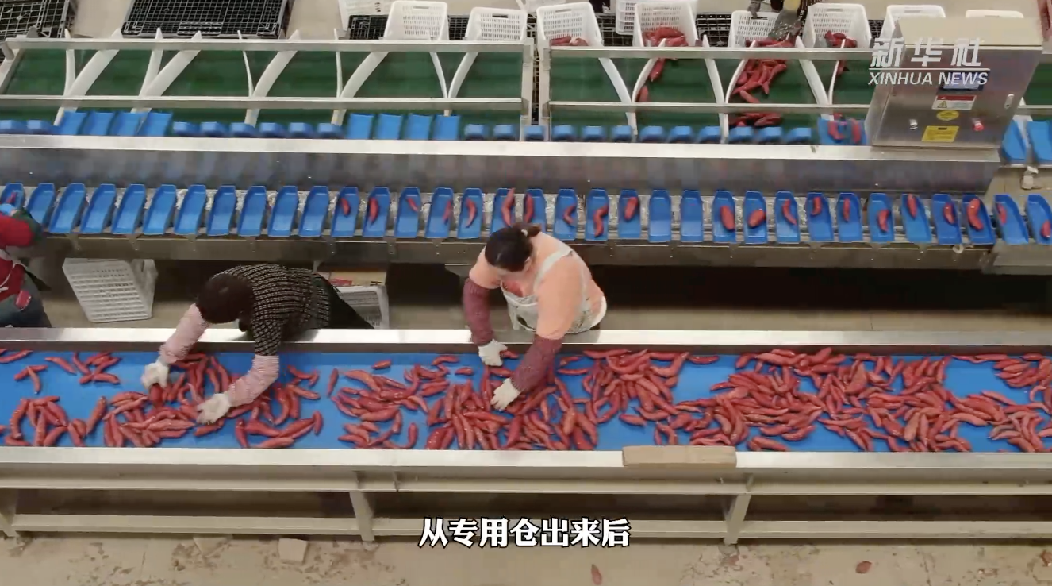 近日,安徽省阜陽(yáng)市潁東區(qū)正午鎮(zhèn)的新品種紅薯迎來(lái)豐收。與其他紅薯一經(jīng)收獲就很快投入市場(chǎng)銷售不同,這里的紅薯要經(jīng)歷除濕、加熱、二氧化碳濃度調(diào)節(jié)、水洗、篩選等一系列提升附加值的“鍍金”之旅,最后銷往長(zhǎng)三角、珠三角等地。想看看這些紅薯的“鍍金”之旅嗎?來(lái)聽聽一個(gè)紅薯的“自述”吧!(新華社 記者金劍)
