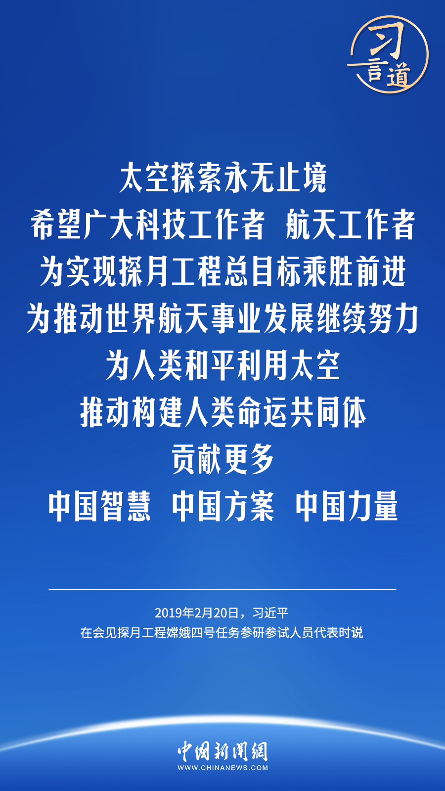 太空探索永無止境。習近平總書記多次強調,愿加強同國際社會的合作,為人類和平利用太空、推動構建人類命運共同體貢獻更多中國智慧、中國方案、中國力量。