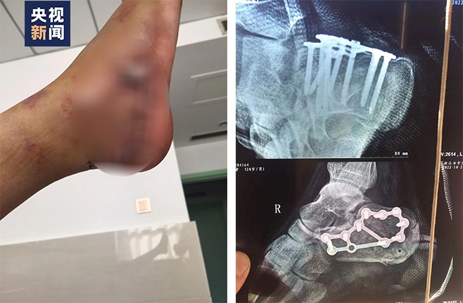 閆單童右腳足跟粉碎性骨折