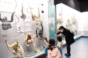 圖為參觀者在昆明動(dòng)物博物館靈長類動(dòng)物展區(qū)參觀。記者楊艷輝攝