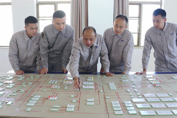 控制系統(tǒng)人員利用電路沙盤現(xiàn)場教學
