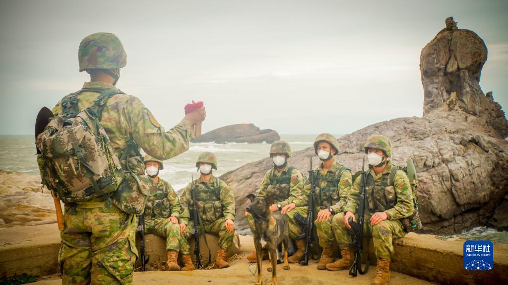駐守在臺山島上的東部戰(zhàn)區(qū)陸軍某海防旅一連官兵,用快板的形式學(xué)習(xí)宣傳黨的二十大精神(10月28日攝)。新華社發(fā)(楊慶祥 攝)