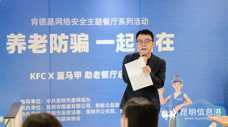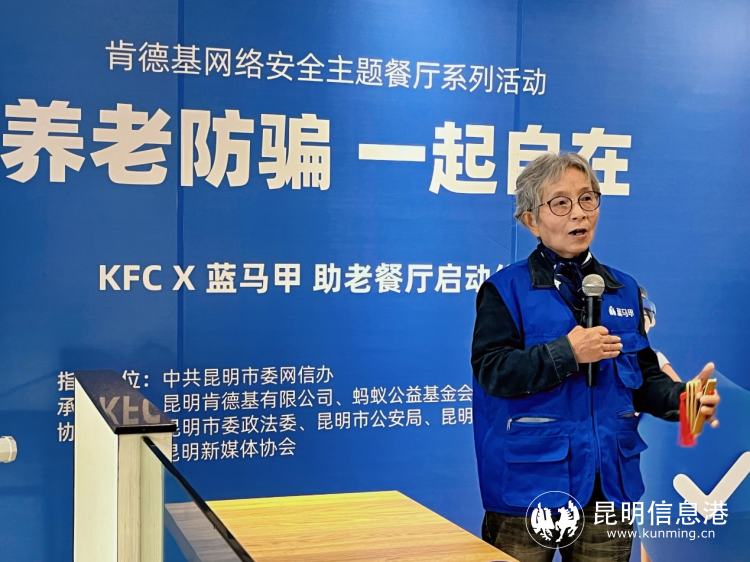 昆明信息港訊 記者李金梓 11月2日,在昆明新柏聯(lián)肯德基網(wǎng)絡(luò)安全主題餐廳舉行了以“養(yǎng)老防騙 一起自在”為主題的網(wǎng)絡(luò)安全公益活動(dòng)。在昆明市委網(wǎng)信辦推動(dòng)下,積極發(fā)揮新媒體平臺(tái)、網(wǎng)絡(luò)名人和老年群體的力量,以老年人線下宣講、網(wǎng)上話題互動(dòng)和網(wǎng)絡(luò)大V短視頻創(chuàng)作等創(chuàng)新方式,開啟打擊養(yǎng)老詐騙宣傳新模式。