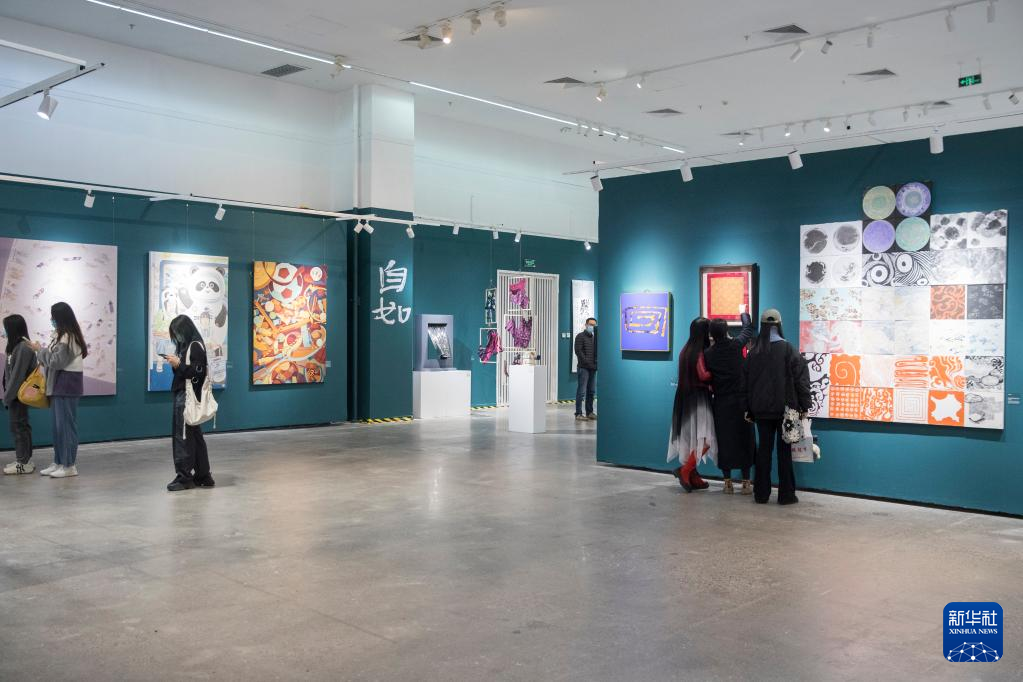 10月30日,參觀者在北京服裝學(xué)院觀看美術(shù)作品展。新華社記者 郭昱 攝