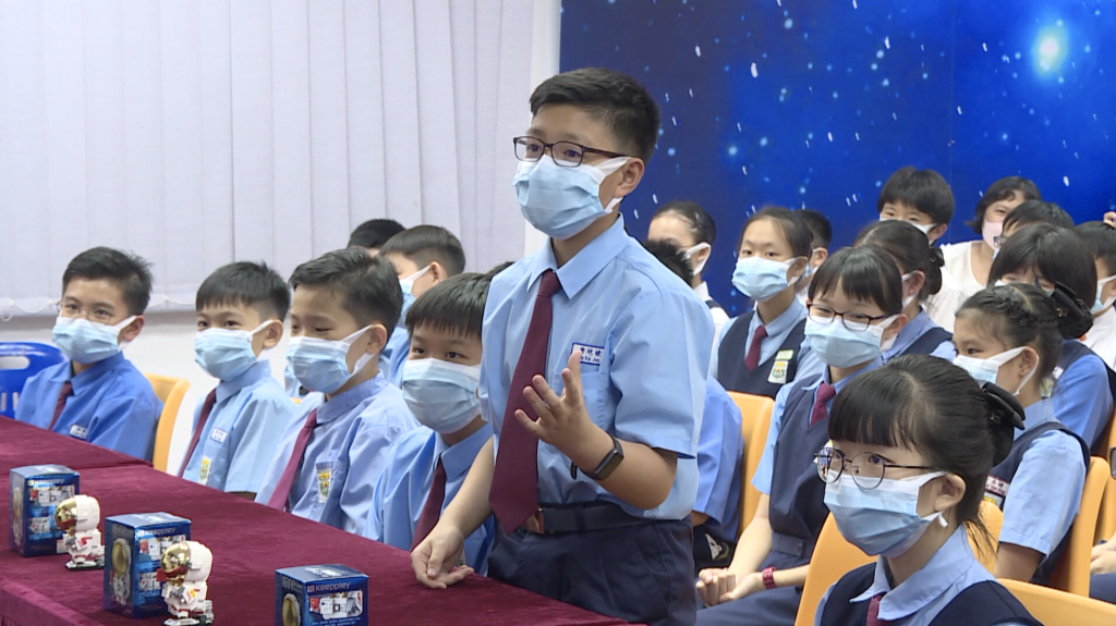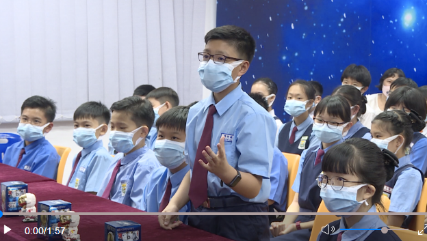 在馬來(lái)西亞分會(huì)場(chǎng),吉隆坡中國(guó)公學(xué)五年級(jí)學(xué)生黃塏竣想知道太空中是否有細(xì)菌,如果在太空中生病了怎么辦。