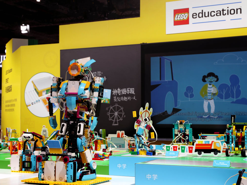 第四屆中國(guó)國(guó)際進(jìn)口博覽會(huì)樂高展臺(tái)(2021年11月5日攝)。新華社記者 劉穎 攝