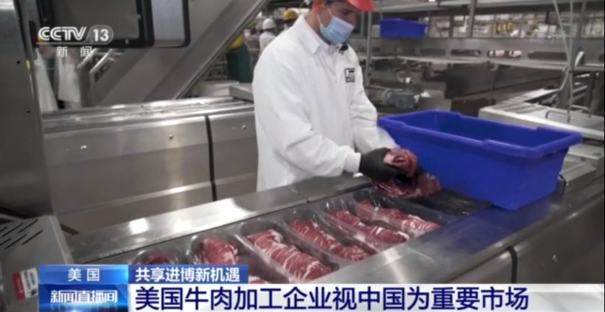 央視記者 許弢:加州的這家牛肉加工廠是美國為數(shù)不多向中國出口牛肉的工廠之一,每年他們向海外出口牛肉的數(shù)量占生產(chǎn)總額的35%左右。而在這其中,大多數(shù)牛肉都銷往中國。今年,他們帶著自己的產(chǎn)品首次走進進博會。