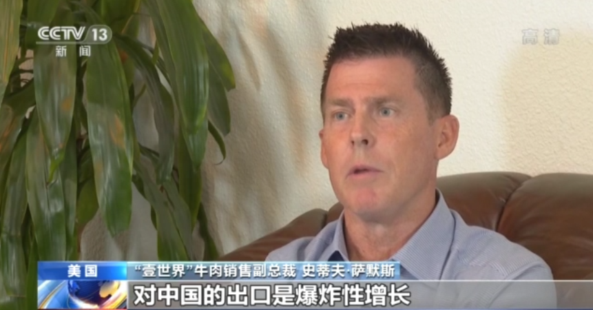 “壹世界”牛肉銷售副總裁 史蒂夫·薩默斯:對中國的出口是爆炸性增長,這絕對是改變了市場,而且有一些在美國本土銷售的牛肉現(xiàn)在正被出口到中國。