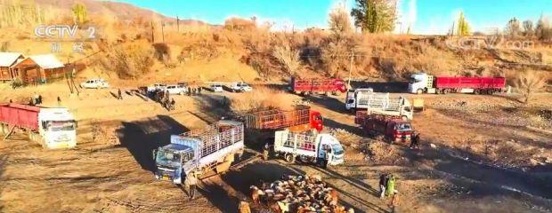 近日,地處新疆北疆的塔城地區(qū)最低氣溫下降到0℃左右,為保障牲畜安全越冬,當(dāng)?shù)啬撩駛儾扇∽屔蟪塑囃瓿赊D(zhuǎn)場。