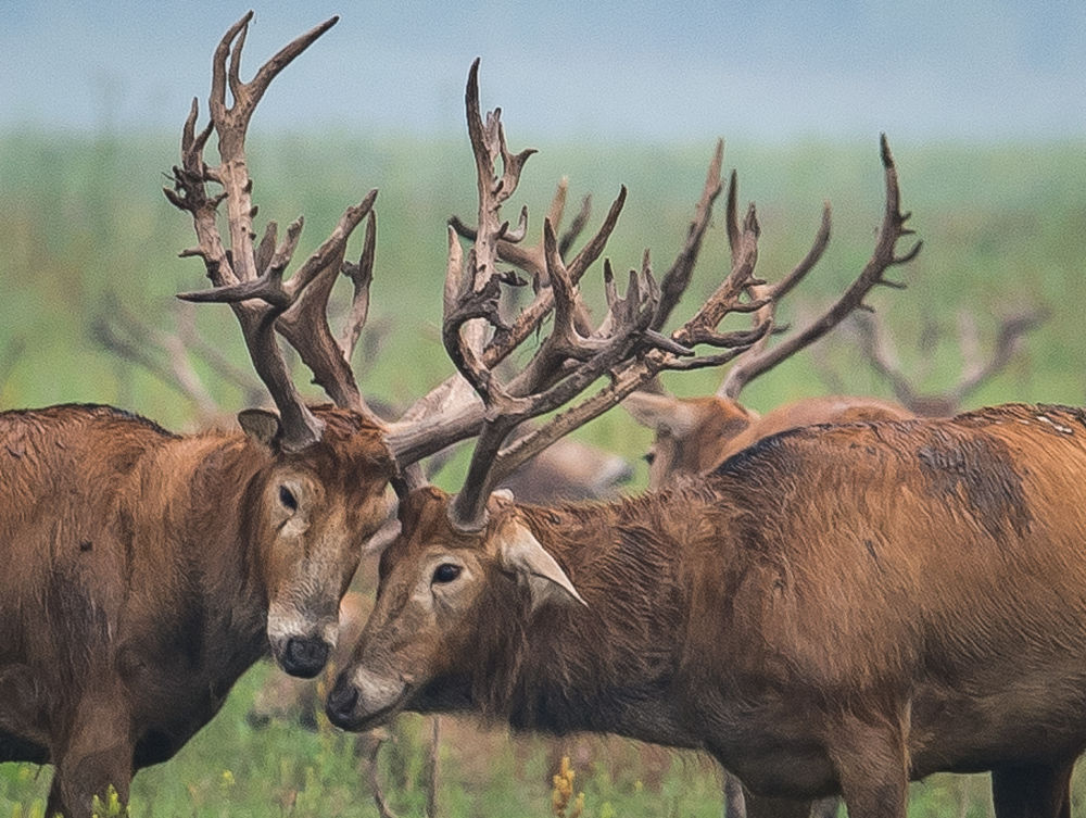 麋鹿在湖北石首麋鹿國(guó)家級(jí)自然保護(hù)區(qū)內(nèi)活動(dòng)(2021年5月17日攝)。新華社記者 肖藝九 攝