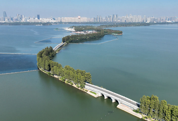 武漢東湖一景(10月19日攝)。新華社記者 程敏 攝