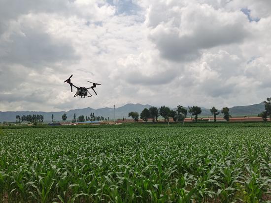 團中央靈丘工作隊支持當?shù)剞r(nóng)業(yè)領域開展植保無人機作業(yè)。