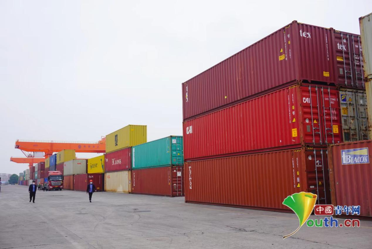 義烏西站鐵路口岸上堆滿集裝箱。 中國青年網(wǎng)記者 曹迪攝