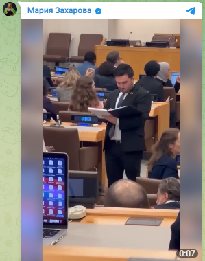 《報紙報》報道稱,扎哈羅娃5日在Telegram上發(fā)了一段視頻,并在配文中介紹稱,“聯(lián)合國大會第三委員會就關于反對將納粹主義英雄化的決議草案召開會議前,美國代表團一名代表正在檢查和記錄‘西方集體’盟友中‘被監(jiān)護人’的出席情況”。
