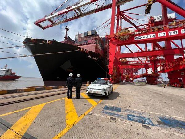 △10月15日,馬紹爾群島籍“阿拉伯迪赫爾”貨輪,運載著第五屆進博會西班牙展品,靠泊洋山深水港四期碼頭。
